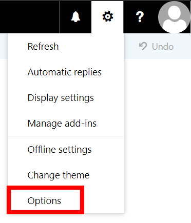 Click the gear in the top-right of the screen and select "Options" in the drop-down menu.